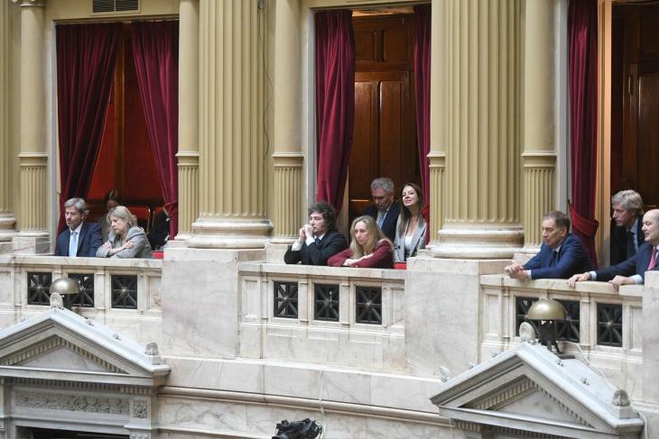 La jornada comenzó con una estética de película. A las 10:13, Manuel Adorni ingresó al recinto mientras desde los palcos oficiales se difundía un video con la música de Rocky. Fue el primer gesto de "blindaje". En ese instante, el presidente Javier Milei, eufórico, le gritó desde su ubicación: “¡Vamos, Manuel!”, marcando que el Gobierno no iba a dejar solo a su funcionario más cuestionado en su hora más difícil.