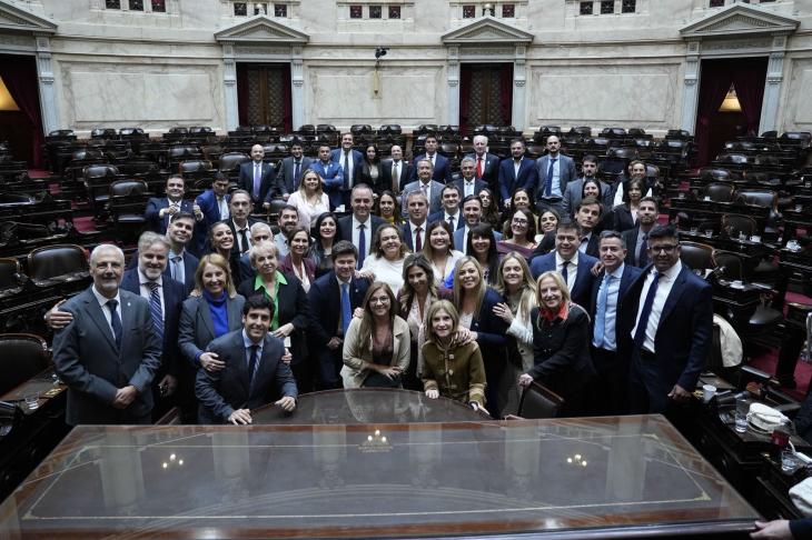 La sesión terminó con un gesto de victoria política para el oficialismo. Apenas el jefe de Gabinete hizo el cierre, los diputados nacionales de La Libertad Avanza comenzó a cantar "¡Adorni! ¡Adorni! ¡Adorni!" mientras el funcionario sonreía. Después hubo una foto de toda la bancada.