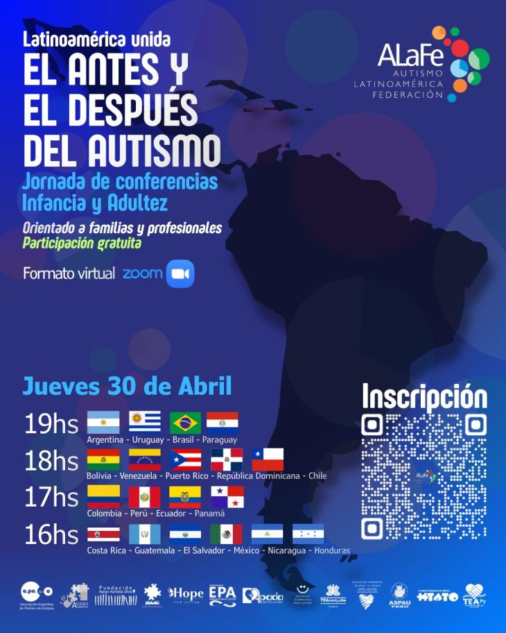La Federación Autismo Latinoamérica (AlaFe) convoca a una jornada de conferencias titulada “Latinoamérica unida: el antes y el después del autismo”, que se desarrollará de manera virtual este jueves 30 de abril. El evento está orientado tanto a familias como a profesionales, y busca generar un espacio de intercambio regional sobre los desafíos y aprendizajes vinculados al espectro autista en las etapas de infancia y adultez.