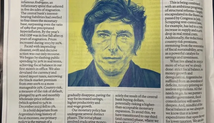 En una nota publicada en el influyente semanario The Economist, el presidente Javier Milei destacó logros de su gestión y dijo que la clave para alcanzarlos fue “abrazar las ideas de la libertad”.