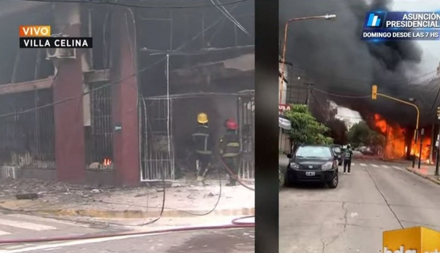 El fuego comenzó en las primeras horas del jueves en el comercio ubicado en la esquina de Chilavert y General Pintos, en la localidad de Villa Celina partido bonaerense de La Matanza, a metros de la avenida General Paz y la autopista Ricchieri.